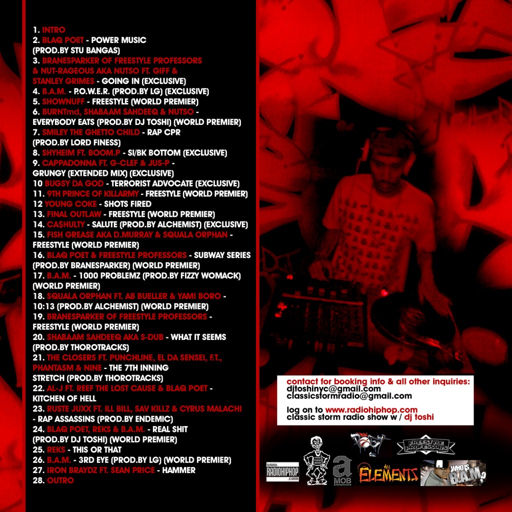 Gotta give props to DJ’s that have balls enough to make rugged mixtapes like this one and go after exclusives. This one not only features premieres from Blaq Poet, Cappadonna ,Shyheim, Shabaam Sahdeeq, Reks, Nutso, Killarmy, B.A.M, Freestyle Professors, BURNTmd, Shownuff of M.O.P., Final Outlaw, and Smiley The Ghetto Child, but is also hosted by Poet as well. How about some hardcore? Yeah, we like it raw.