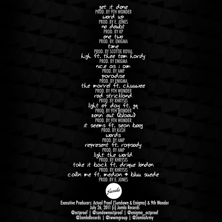 First in Flight State crew Actual Proof has joined forces with LRG, Jamla Records and DJBooth.net to bring fans their latest street release, the Still Hotter Than July LP. The project features 18 original joints from emcees Sundown and Enigma, including reader-approved leak “Get It Done.” Joining Actual Proof on the guest tip throughout Still Hotter Than July are Thee Tom Hardy, Rapsody, Sean Boog, GQ, Drique London, Chuuwee, Median and Bluu Suede. In addition to instrumentals by 9th Wonder and Enigma (who Executive Produced the project along with Sundown), the set features beats by fellow Soul Council members E. Jones, Ka$h, Khrysis and Amp.