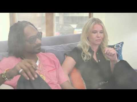 Snoop Dogg feeds Dog For Dog food to Chelsea Handler in the Chelsea Lately Green Room.