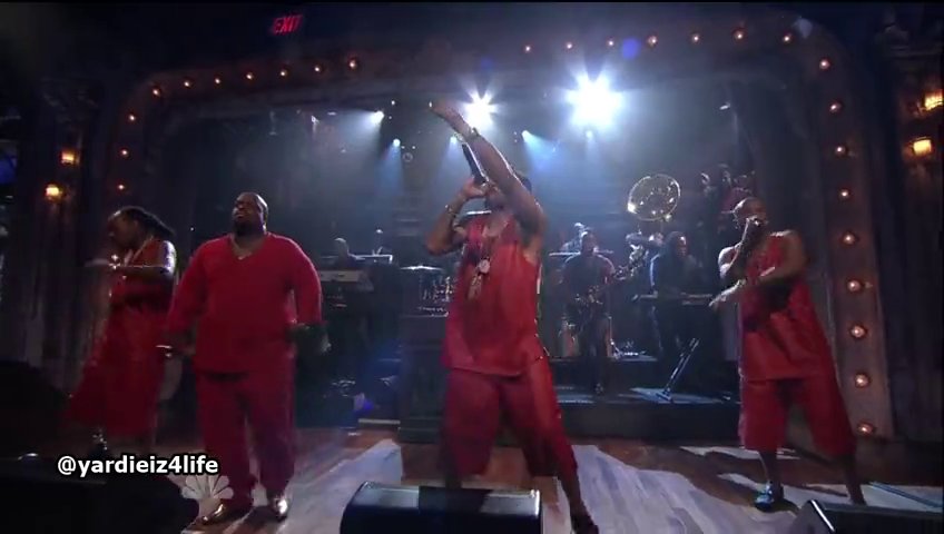 Big Sean performs his collab with Cudder and Nasir Jones from Hall Of Fame. Nas is absent, but he’s backed by the legendary Roots crew.